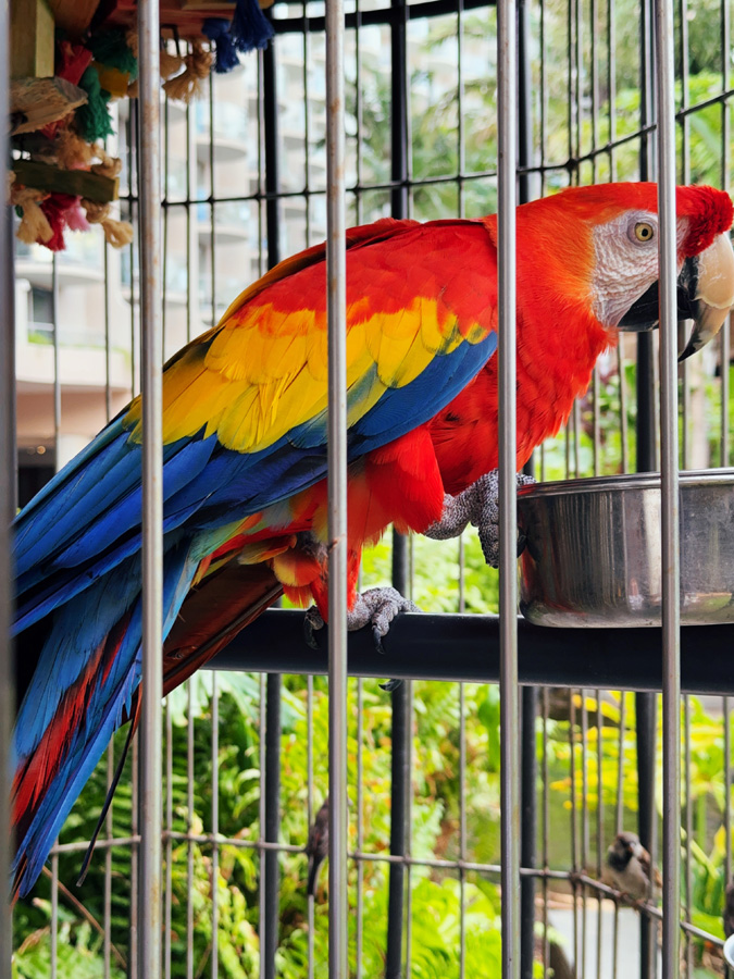 A pretty parrot at the Westin hotel, which was right next to our condo building